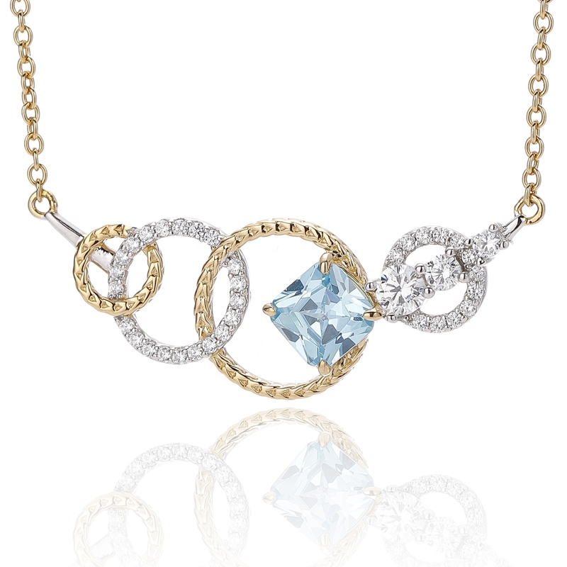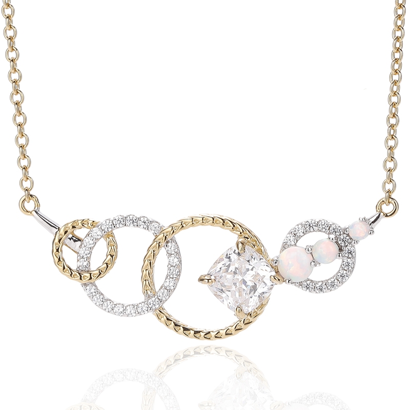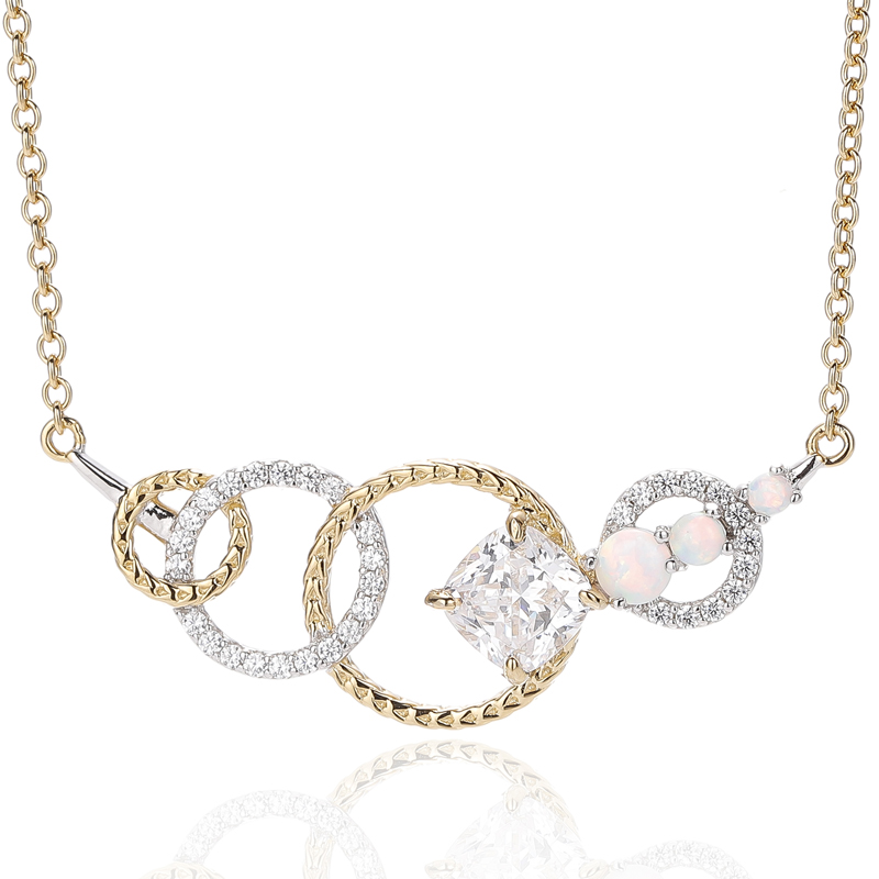 4.66925ラウンドオパールとクッションホワイトキュービックジルコンシルバーペンダント、ツートンメッキ
