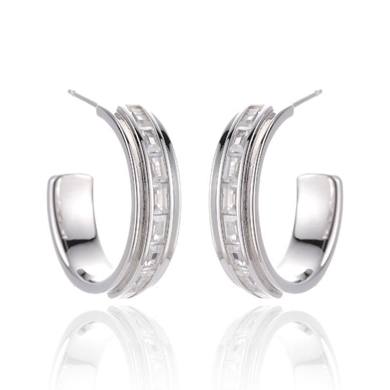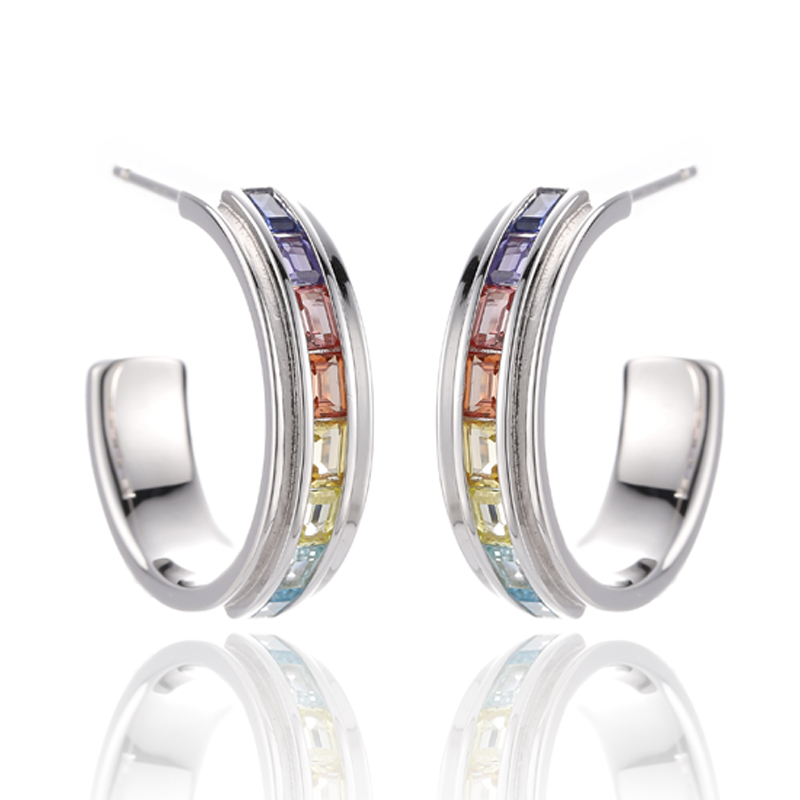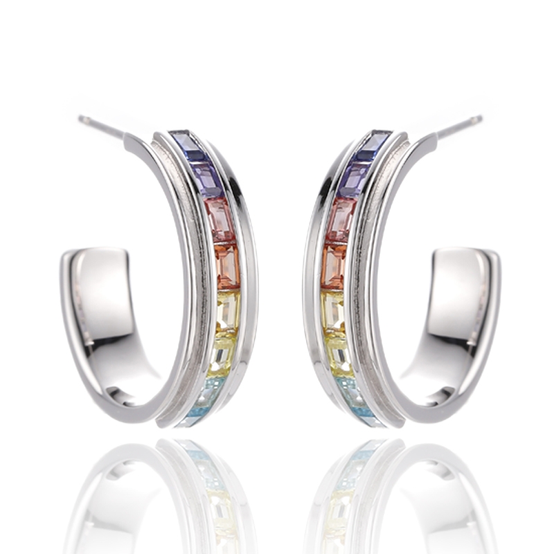 6.75バゲット レインボー キュービックジルコン ロジウムシルバー イヤリング