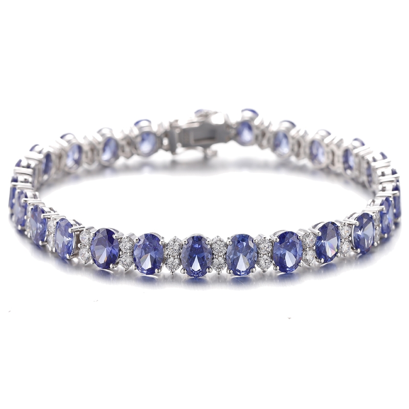 17.60オーバルシェイプのレインボーとラウンドホワイトキュービックジルコンロジウムシルバーブレスレット