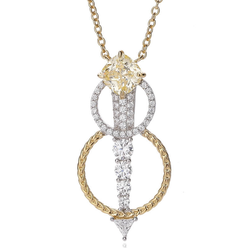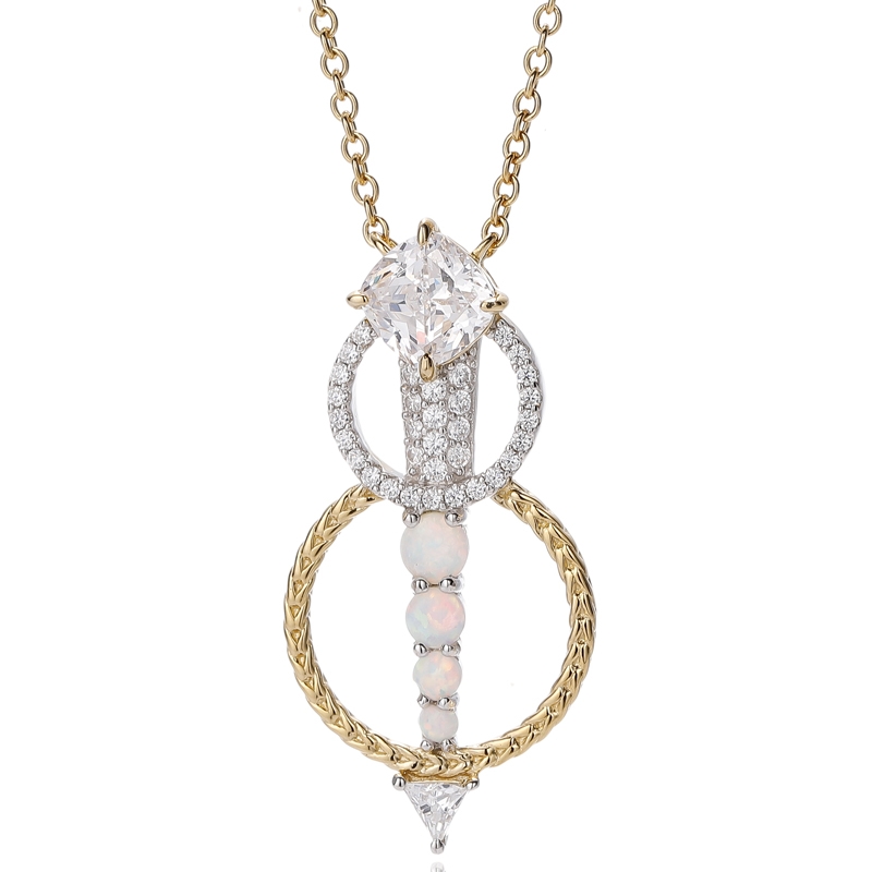 4.81ラウンドオパールとクッションホワイトキュービックジルコンのシルバーペンダント(ツートンメッキ)